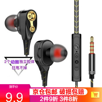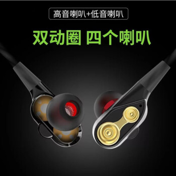 黒沙(HEISHA)ヘッドフォンの4つのコアの2つのリングを耳に入れたケーブルヘッドフォンのヘッドホンのスポーツゲームコンピュータの携帯電話のユニバーサルアップルファーウェイMiKの歌のランニングH 419-01-黒