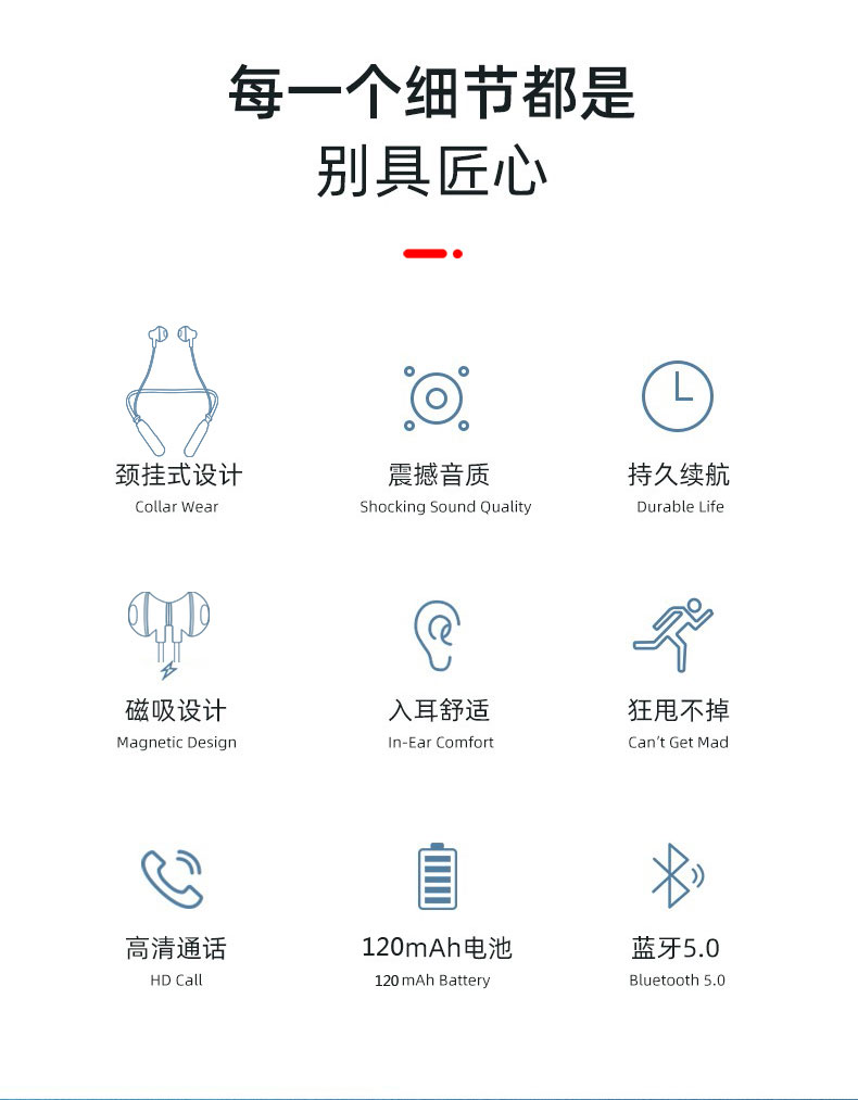 ヘッドフォンは手に持ってきて質感があります。重くなくて、走っているのを買ってきましたが、最近は忙しくて運動がなくなりました。長く持っていても大丈夫です。素晴らしいですね。本当です私も超もつれやすい人ですが、本当に間違っていないと思います。買うのがオススメです。航続能力はとても強くて、一日で音の効果がとてもよくて、材質がよくて、外観が綺麗で、首にかけられます。二つのイヤホンはお互いに吸着できます。